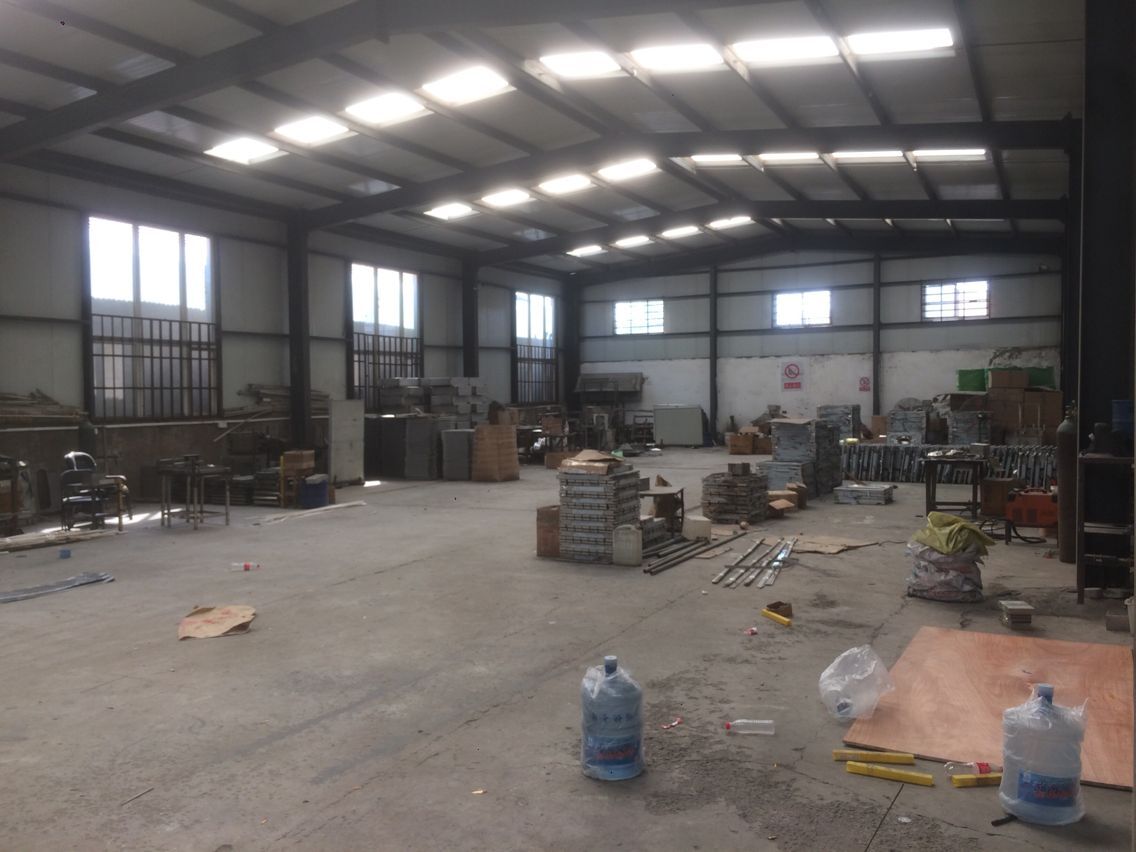 占地3.6亩 1、库房分2栋(600㎡、500㎡) 2、檐高5米,顶高6.5米 3、办公住宿200平米 4、厂区有动力电 5、可进13米大车